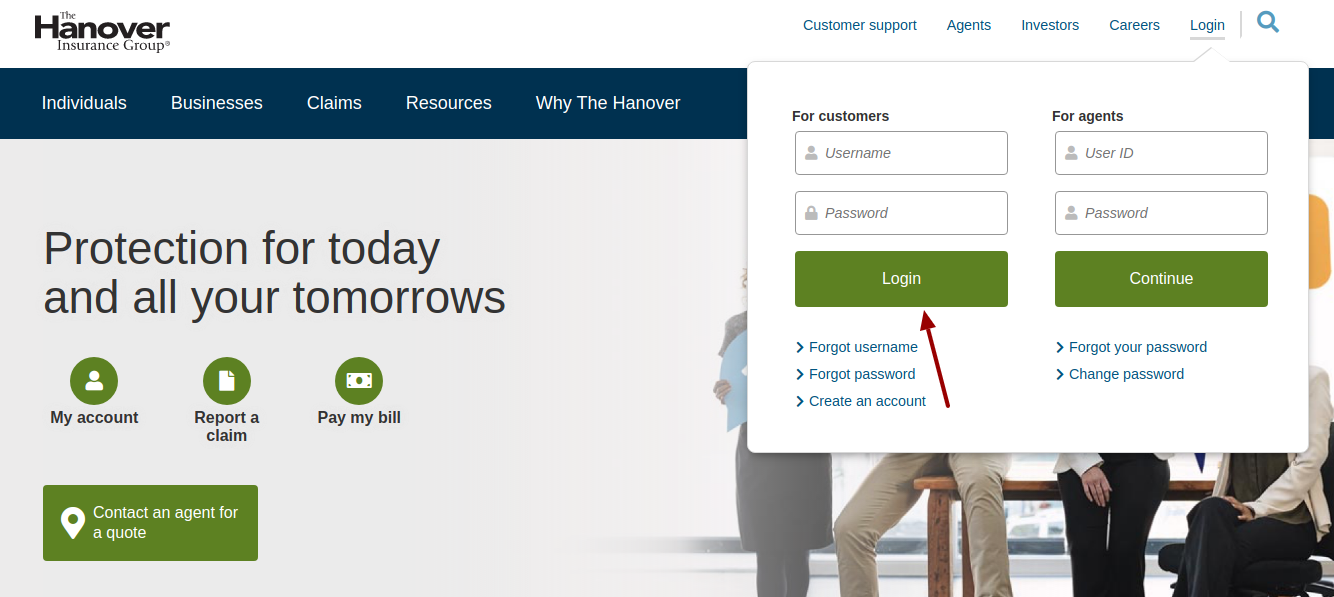 - From the drop-down menu choose the claim you need. For instance, if it’s Auto, next you will be asked to log in with the online account.